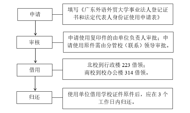 需要使用学校事业单位法人证书复印件或因公使用法定代表人身份证复印件的校内单位,须在党办、校办网页下载并填写《广东外语外贸大学事业单位法人证书和法定代表人身份证使用申请表》(以下简称申请表)