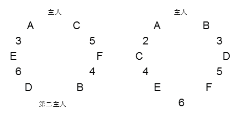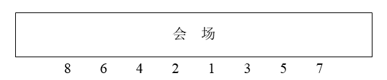 2.出席会议、活动的领导同志人数为双数时,主席台第一排位置安排如下: