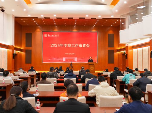 2月29日,我校在行政楼国际会议厅召开2024年学校工作布置会。校党委书记石佑启部署学校2024年度重点工作。校领导,中层领导人员等参加会议。