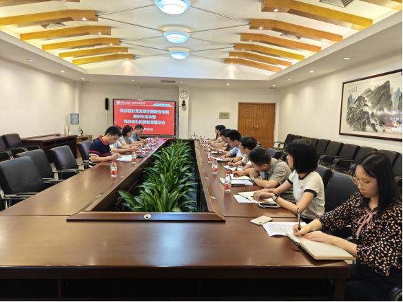 近日,党办校办召开主题教育专题组织生活会暨纪律教育警示会,全体成员参加会议,党办校办主任谢伟光主持会议。