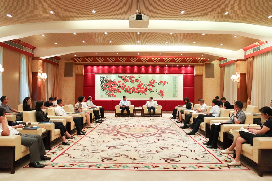 9月16日上午,昆明市人大常委会主任拉玛·兴高一行来访我校,我校校长石佑启在行政楼贵宾厅接待来宾,双方就加强友好往来、建立合作关系等进行交流。