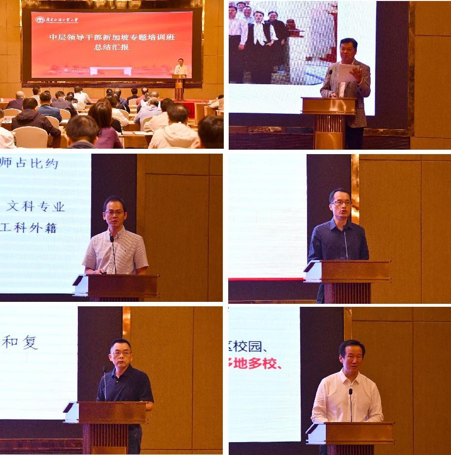 期间,开展了暑期中层领导干部新加坡专题培训班的总结汇报,陈金诗代表班级作了全面的总结汇报,学员代表周鹏、包生耿、王常吉、展凯分别围绕“国际化复合型人才培养”“高校管理领导能力创新”“大数据和人工智能背景下的教育教学改革”“学科专业建设和人才培养创新”作专题汇报,分享新加坡学习期间收获的先进经验,为深入研讨学校深化改革方案提供了借鉴。