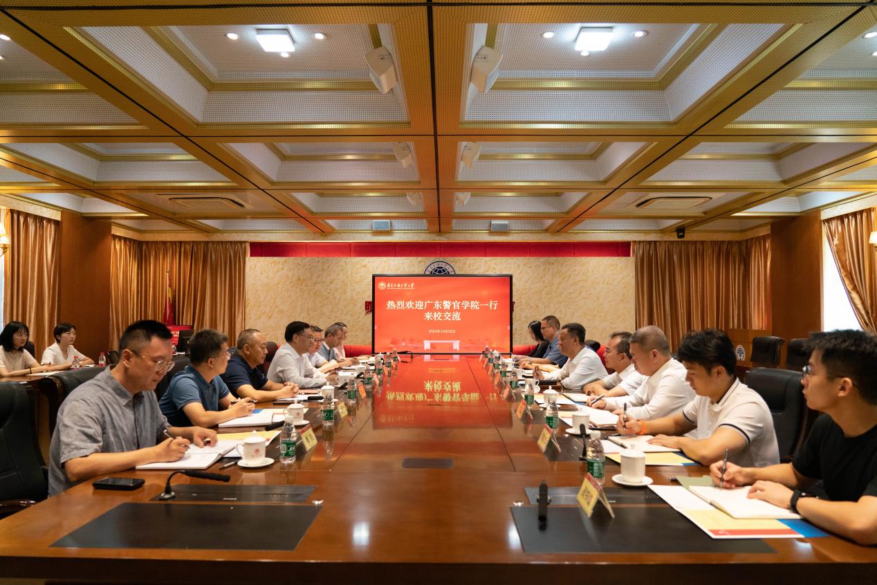 广东警官学院党政办公室、组织部、科研部,我校党委(校长)办公室、发展规划部、人力资源部、研究生院、法学院等部门相关负责人参加交流。
